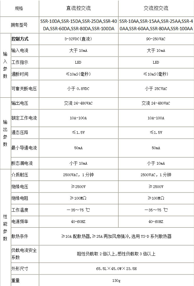 三. 以下是單相固態(tài)繼電器參數(shù):