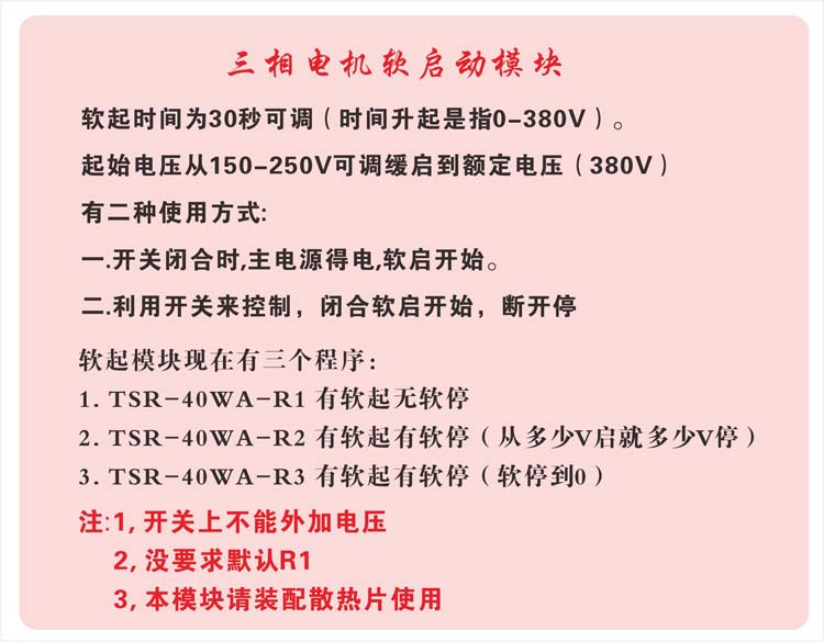 以下是三相電機軟起動模塊參數(shù):